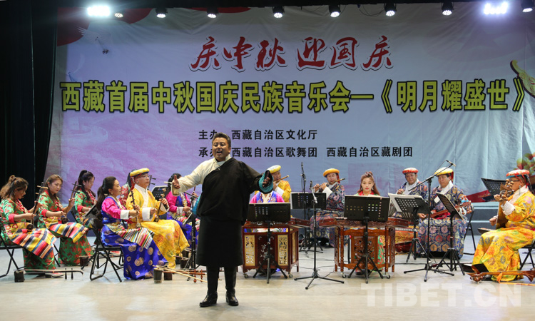 中國(guó)西藏網(wǎng)訊 器樂(lè)齊奏、堆諧奔放、歌曲悠揚(yáng)……9月25日晚,一臺(tái)以“享民樂(lè)美、敘佳節(jié)情”為主題的民族音樂(lè)會(huì)——《明月耀盛世》在西藏自治區(qū)藏劇團(tuán)上演。作為西藏自治區(qū)首屆中秋國(guó)慶民族音樂(lè)會(huì),音樂(lè)會(huì)營(yíng)造了濃厚喜慶的節(jié)日氛圍。