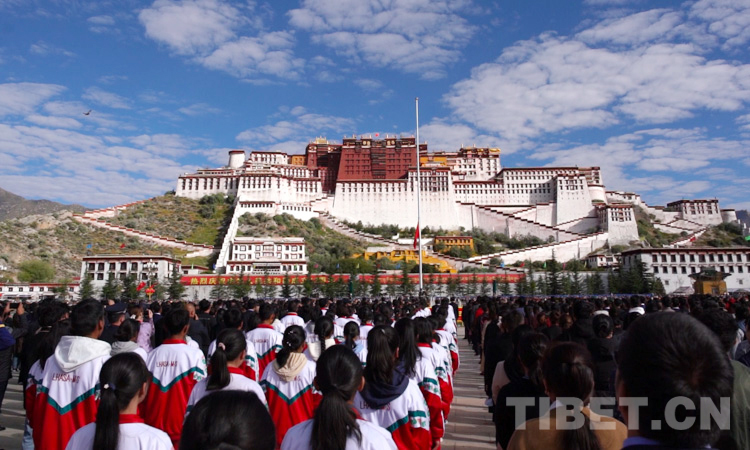 當(dāng)日,布達拉宮廣場上,漢、藏文“熱烈慶祝中華人民共和國成立72周年”的標(biāo)語格外醒目,西藏自治區(qū)以及拉薩市各族各界代表共1000余人參加了儀式。(中國西藏網(wǎng) 記者/趙耀)