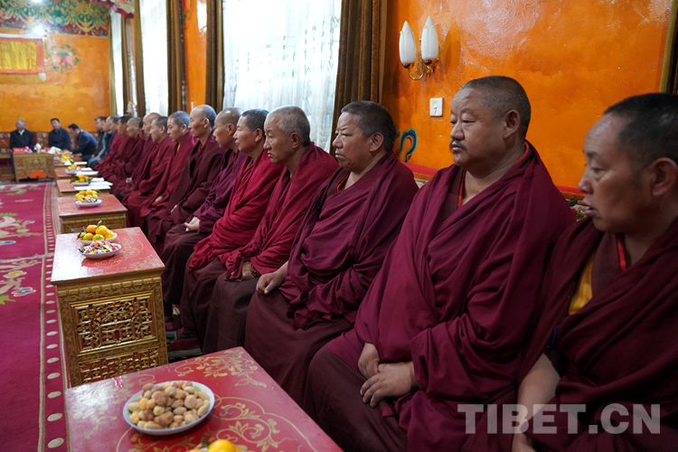 張延清說,今年,在中國共產(chǎn)黨成立100周年,西藏和平解放70周年之際,習近平總書記作為中共中央總書記、國家主席、中央軍委主席到西藏慶祝西藏和平解放,在黨和國家歷史上是第一次,充分體現(xiàn)了以習近平同志為核心的黨中央對邊疆地區(qū)的深情牽掛、對西藏工作的高度重視、對西藏各族干部群眾的深厚感情。7月22日下午,習近平總書記來到建寺600多年的哲蚌寺,受到了全寺僧人最高禮遇的迎接。習近平總書記充分肯定了哲蚌寺在擁護中國共產(chǎn)黨、擁護社會主義制度、維護祖國統(tǒng)一等方面做出的積極貢獻,并關心詢問僧人身體狀況特別是老年僧人健康問題,在場的僧人都很感動??v觀世界,國家領導人如此高度重視宗教工作、如此深情關懷宗教界人士,唯有中國、唯有中國共產(chǎn)黨的領導人。知恩、念恩、感恩、報恩是菩提心的根本。各位僧人朋友們一定要按照習近平總書記的指示精神,守法敬業(yè)、愛國愛教、潛心修行、向善為民、利益眾生,真正做慈悲為懷的真佛子。