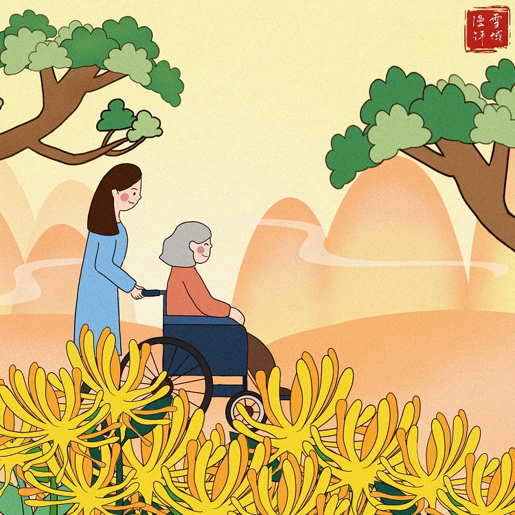 人生易老天難老,歲歲重陽,今又重陽。“誰言寸草心,報(bào)得三春暉”“老吾老以及人之老”“天下之本在家”,尊敬老人、孝敬父母,敬老孝老正成為新時(shí)代中國的生動生活場景。(中國西藏網(wǎng) 文/王智霖 繪/李絲雨)
