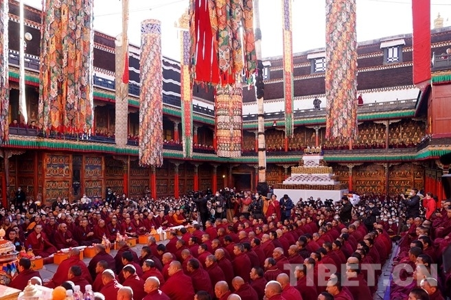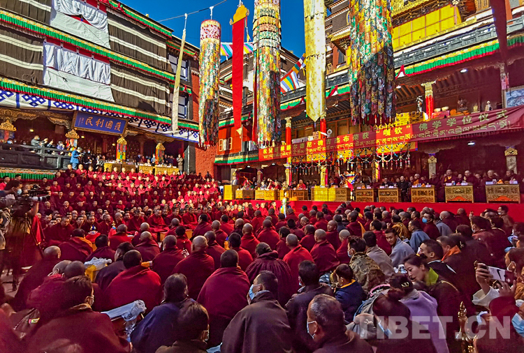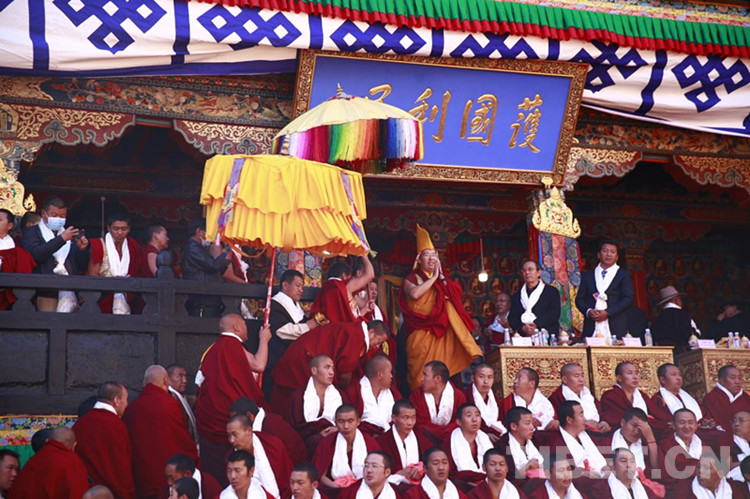 中央統(tǒng)戰(zhàn)部、國(guó)家宗教事務(wù)局賀信表示,十一世班禪自1995年坐床以來,在黨中央的親切關(guān)懷下,勤學(xué)苦修、廣聞深思,解行并進(jìn),宗教學(xué)識(shí)日益精深。特別是近日在扎什倫布寺辯經(jīng)法會(huì)上通過嚴(yán)格考試和答辯考取最高的“嘎欽”學(xué)位,標(biāo)志著十一世班禪在宗教修為上取得重要成果,也充分說明了黨的宗教信仰自由政策在西藏得到全面貫徹落實(shí)。祝愿十一世班禪牢記習(xí)近平總書記的諄諄教導(dǎo),繼承和發(fā)揚(yáng)歷代班禪愛國(guó)愛教、護(hù)國(guó)利民的光榮傳統(tǒng),繼續(xù)刻苦學(xué)習(xí)、潛心修行,輔弼社會(huì)、饒益眾生、莊嚴(yán)國(guó)土、利樂有情,在維護(hù)祖國(guó)統(tǒng)一和民族團(tuán)結(jié)、堅(jiān)持藏傳佛教中國(guó)化方向、促進(jìn)藏傳佛教與社會(huì)主義社會(huì)相適應(yīng)上做出新的貢獻(xiàn)。