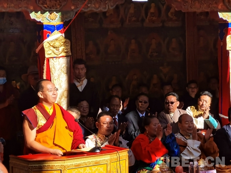 旦科代表西藏自治區(qū)黨委、政府講話:考取“嘎欽”佛學(xué)學(xué)位,是班禪額爾德尼?確吉杰布精進(jìn)學(xué)識(shí)、弘法利生畢生事業(yè)中的關(guān)鍵環(huán)節(jié),是二十五年來勤學(xué)苦修、福慧俱增的直接體現(xiàn),是在宗教修為上全面成熟的重要標(biāo)志,更是習(xí)近平總書記和黨中央教育培養(yǎng)的重大成果。這是扎什倫布寺的一大喜事,是藏傳佛教界的一大盛事,是寺廟僧尼、信教群眾期盼已久的一件大事。