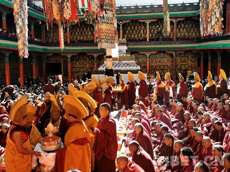中國(guó)西藏網(wǎng)訊 日前,全國(guó)政協(xié)常委、中國(guó)佛教協(xié)會(huì)副會(huì)長(zhǎng)、中國(guó)佛教協(xié)會(huì)西藏分會(huì)會(huì)長(zhǎng)班禪額爾德尼?確吉杰布在扎什倫布寺順利通過考核,獲得藏傳佛教格魯派最高學(xué)位之一的“嘎欽”學(xué)位。10月28日上午10時(shí),慶祝班禪獲得“嘎欽”佛學(xué)學(xué)位儀式在西藏自治區(qū)日喀則市扎什倫布寺多加大院舉行,近千名僧尼、信教群眾共慶盛事。