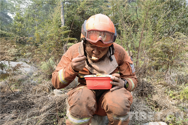 昌都市森林消防支隊(duì)卡若區(qū)中隊(duì)負(fù)責(zé)清理火場南側(cè)面積最廣的區(qū)域,由于情況緊急,火場坡度接近80°,加上每名消防員負(fù)重20公斤以上,指戰(zhàn)員們出發(fā)時(shí)只帶了滅火裝備和少量的飲用水,忍饑挨餓,每日連續(xù)奮戰(zhàn)將近10小時(shí)以上。期間,他們婉拒了好幾撥主動(dòng)來送水、送干糧的群眾。