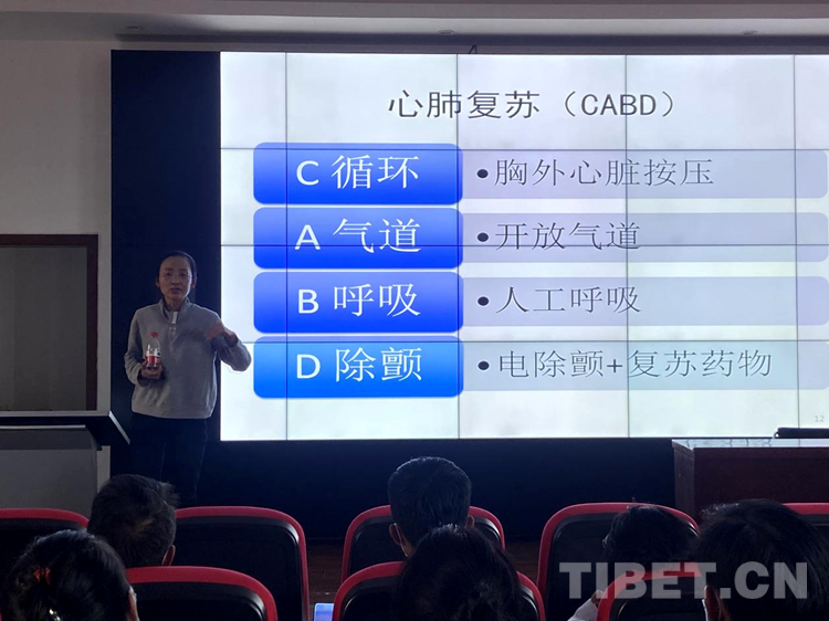 義診之后,北京第七批援藏醫(yī)療隊代表劉海霞醫(yī)生對社區(qū)衛(wèi)生院醫(yī)護人員進行了心肺復蘇等急救培訓,參與義診的專家、醫(yī)生就社區(qū)衛(wèi)生院醫(yī)護人員在日常工作中所遇到的臨床問題進行解答。