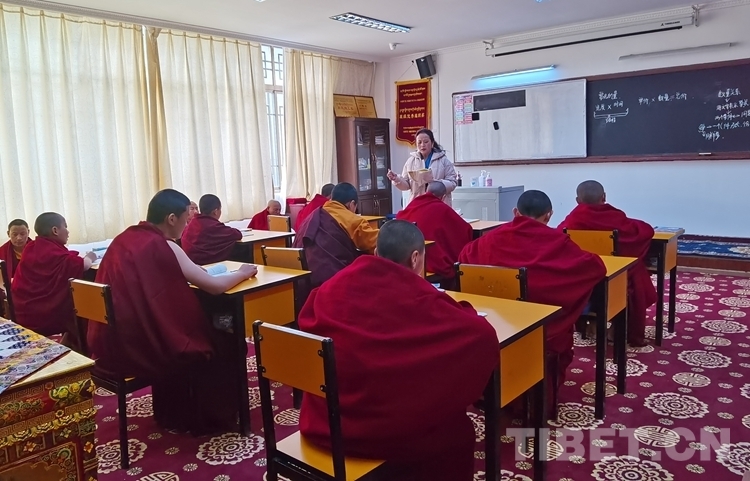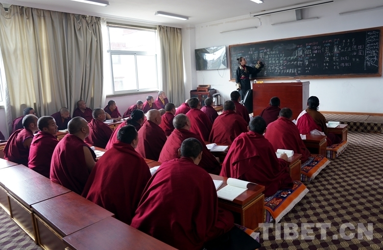 圖為佛學(xué)院學(xué)員在學(xué)習(xí)基礎(chǔ)文化知識 攝影:王淑