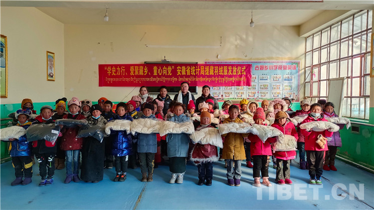 據(jù)了解,活動得到西藏自治區(qū)統(tǒng)計(jì)局、安徽省統(tǒng)計(jì)局、安徽省再貸款公司等單位企業(yè)以及愛心人士的積極響應(yīng),短短一個(gè)星期就購買到1013件羽絨服。為讓孩子們早日穿上羽絨服,援藏干部們決定立即將羽絨服送到古姆鄉(xiāng)小學(xué)。12月13日一早,他們一早就從拉薩出發(fā),日夜兼程,冒著零下二十多度的低溫大雪天氣,穿過十多個(gè)海拔5000米以上的埡口,行程1500多公里,終于在15日下午16點(diǎn)39分將羽絨服送到了孩子們手中,讓207名孩子在零下30多度寒冬中感受到了春天般的溫暖。