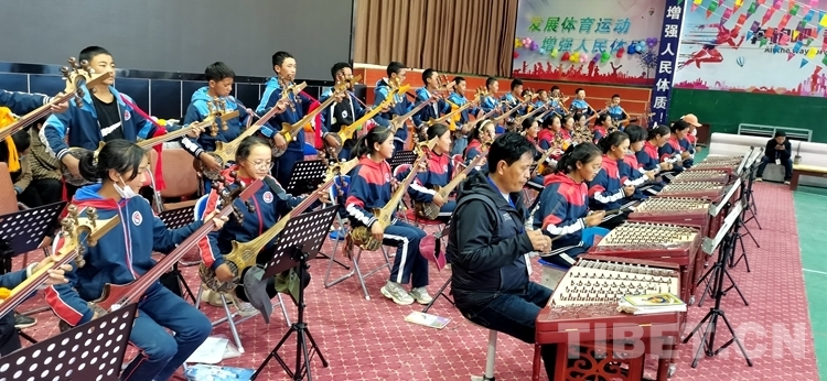 圖為薩迦縣中學(xué)民樂社在上課