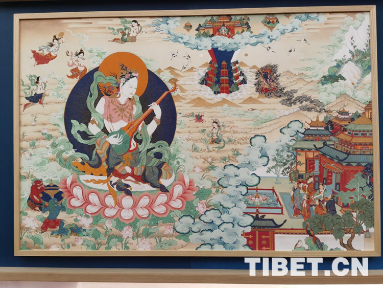 唐卡作為藏民族文化中一種獨具特色的繪畫藝術(shù)形式,題材內(nèi)容涉及諸多領(lǐng)域的藏族“百科全書”,是中華民族民間藝術(shù)中彌足珍貴的非物質(zhì)文化遺產(chǎn)。此次展出的新唐卡,以輕靈的姿態(tài)融入社會、融入市民生活,把內(nèi)在和善吉祥之美奉獻給觀眾,這種新表達,讓人耳目一新。