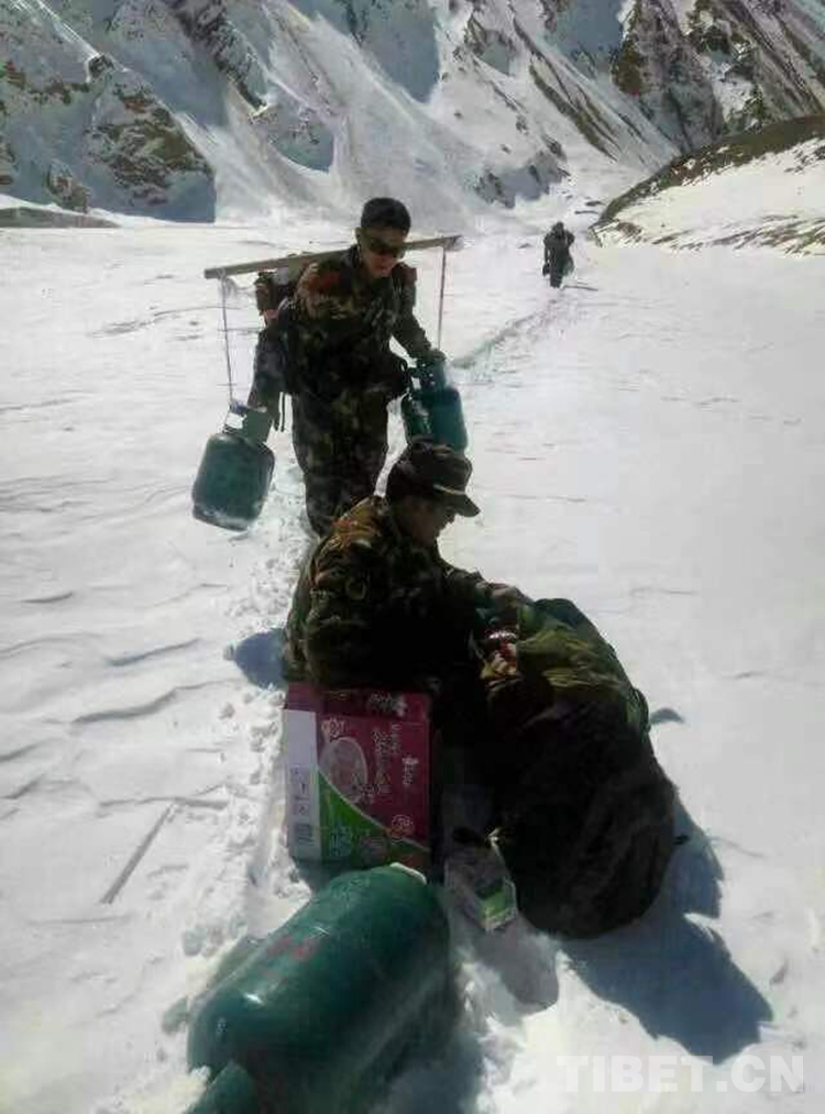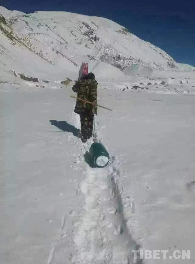 圖為尼瑪國杰與戰(zhàn)友一起輸送補(bǔ)給物資回執(zhí)勤點(diǎn)路上
