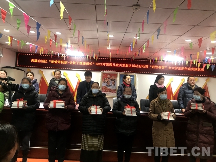 中國(guó)西藏網(wǎng)訊 即將迎來(lái)2022年寒假之際,12月28日,西藏自治區(qū)“把愛(ài)帶回家-讓孩子健康成長(zhǎng)”寒假兒童關(guān)愛(ài)服務(wù)暨“武警春蕾”女大學(xué)生助學(xué)金發(fā)放儀式在拉薩啟動(dòng)。