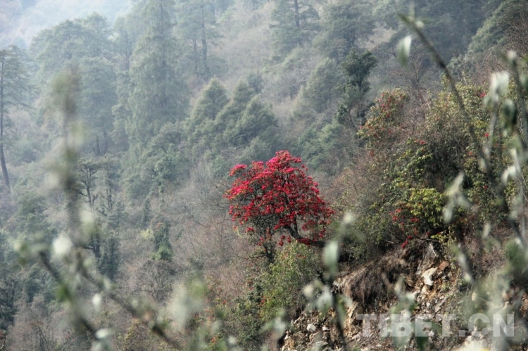 只見萬(wàn)綠叢中一樹高山杜鵑盛開似火,