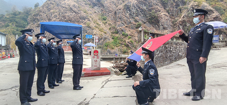 圖為友誼橋執(zhí)勤點(diǎn)民警歐珠次仁在警察節(jié)來臨之際為界碑描紅