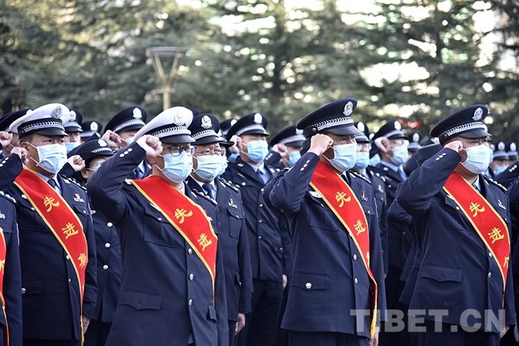 中國西藏網訊 1月10日上午,冬日暖陽剛照醒拉薩河谷,西藏自治區(qū)公安廳機關大院里公安功模代表、民警代表、新入警人員等便聚集起來。大家面向警旗肅立、敬禮并齊唱人民警察警歌,共同迎接第二個中國人民警察節(jié)。升旗儀式結束后,全體民警舉右拳進行人民警察誓詞宣誓。