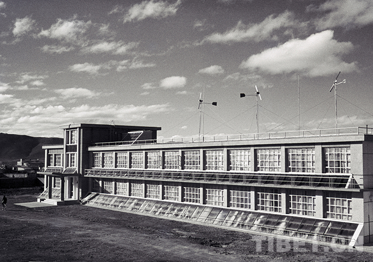 這是1984年由國家撥款232萬元,在藏北首府那曲鎮(zhèn)所建起的那曲地區(qū)(現(xiàn)那曲市)風(fēng)能試驗(yàn)站大樓(唐召明1987年攝)