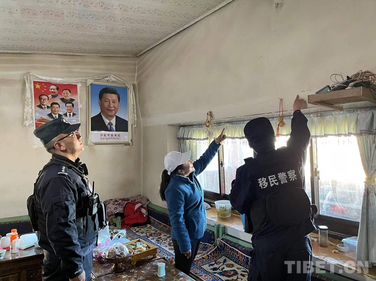 圖為林芝邊境管理支隊里龍邊境派出所民警在轄區(qū)群眾家中查看房屋受損情況 攝影/吳敏