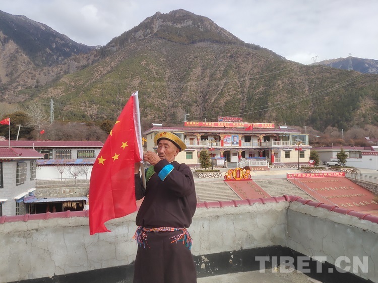 在中國共產(chǎn)黨成立100周年之際,公覺旦巴拿著自己買的國旗在村口開始“蹲點(diǎn)”,當(dāng)有村民經(jīng)過村口時,他便上前發(fā)放新的國旗,督促大家:“中國共產(chǎn)黨成立100年即將到來,趕緊把家里的舊國旗換了,以嶄新的面貌迎接‘七一’,要知道,我們現(xiàn)在的美好生活都是黨給的!”村民們總是雙手接過國旗,一邊道謝,一邊微笑著點(diǎn)頭表示認(rèn)同。