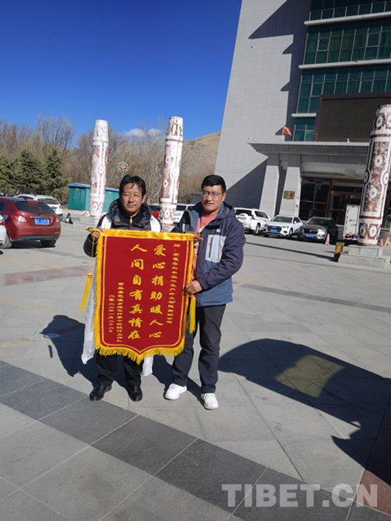 為了表示謝意,雄巴村駐村工作隊(duì)成員赴貢嘎縣為興豐農(nóng)林生產(chǎn)開發(fā)有限責(zé)任公司,當(dāng)面道謝并為該公司送上錦旗及該村特產(chǎn)干魚。(中國(guó)西藏網(wǎng) 記者/拉姆 圖片由雄巴村駐村工作隊(duì)提供)