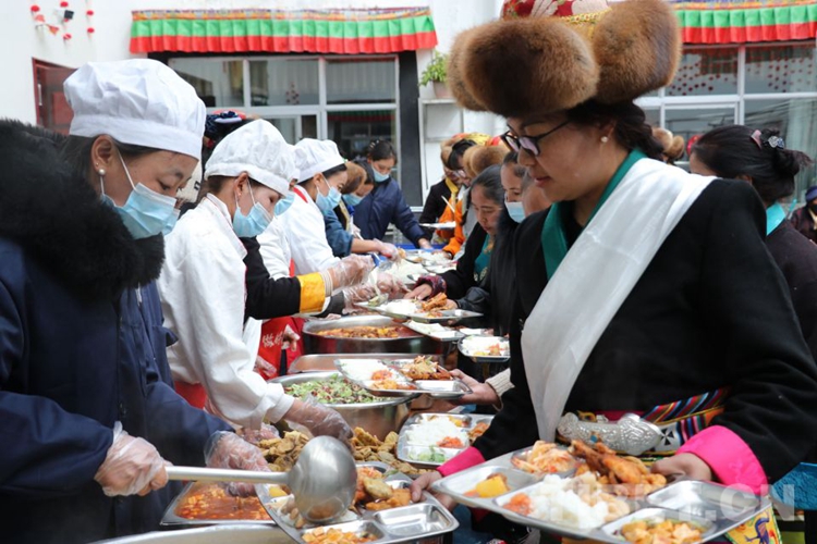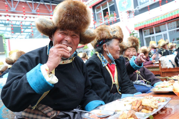 在集中供養(yǎng)中心內,桌上擺滿了風干牛肉、糖果、卡塞、水果等各種食品,老人們身著節(jié)日盛裝,精神抖擻、有說有笑、臉上洋溢著幸福的笑容。政協(xié)主席普瓊送上新年賀詞,并代表縣委、縣人大常委會、縣政府、縣政協(xié)向老人們送去新年問候和衷心祝福。他指出,在黨和政府的關心關愛下,在社會各界人士的大力支持下,供養(yǎng)老人享受著美好的幸福生活,希望老人們在享受當下幸福生活的同時,知道幸福生活從哪里來的,更要感黨恩、聽黨話、堅定永遠跟黨走的決心。