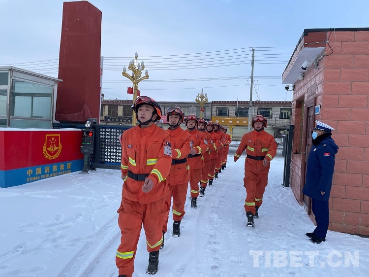中國西藏網(wǎng)訊 晚上七點(diǎn)鐘,薛太文還在哨位上堅(jiān)守著,他是那曲市森林消防大隊(duì)去年下隊(duì)的新消防員,這是他在這里過的第一個(gè)春節(jié)。警衛(wèi)室外面是零下三十七度的低溫,室內(nèi)在暖氣的包圍下溫暖如同春天?!鞍謰屵@會(huì)在干啥呢?應(yīng)該是在看電視吧,奶奶身體不知道這兩天怎么樣,等會(huì)下崗了給他們打個(gè)視頻吧……”正想著,大門外的車輛鳴號(hào)聲把他的思緒從家里拉了回來。薛太文趕忙沖出溫暖的警衛(wèi)室,在微微的細(xì)雪中打開了大門,板正地站好敬禮——在城區(qū)周邊巡查的隊(duì)友們回來了。