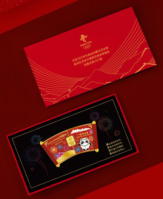 圖為“來日方長”北京2022年冬奧會閉幕式紀(jì)念徽章喜慶好看的包裝盒 圖片來源:奧林匹克官方旗艦店