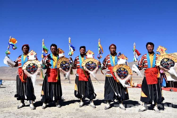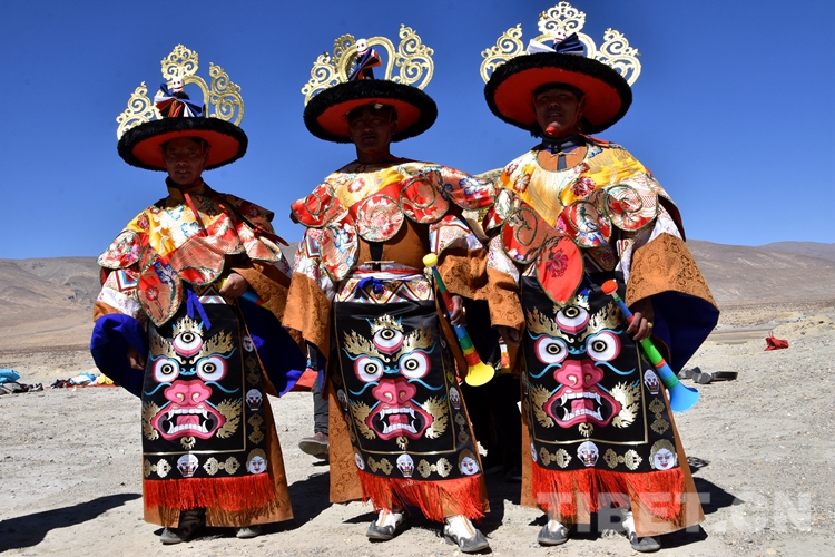圖為曲堆藏戲隊隊員身著跳神服(跳神環(huán)節(jié)也是曲堆藏戲的特色)攝影:拉姆