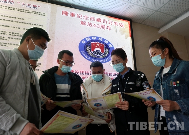 在西藏出入境邊防檢查總站執(zhí)法調(diào)查支隊辦證大廳,辦證室民警結(jié)合辦證室群眾多、人流量大的實際,開展以“攜手法律宣傳,共建平安邊境”為主題的宣傳活動。通過懸掛宣傳標(biāo)語、設(shè)置新舊西藏對比圖片專欄、發(fā)放“新舊西藏對比圖及涉邊法律法規(guī)”為主題的宣傳單等多種渠道,講解西藏百萬農(nóng)奴翻身得解放的歷史背景,讓更多游客群眾了解西藏民主改革以來波瀾壯闊的發(fā)展史和翻天覆地的新變化,銘記只有中國共產(chǎn)黨才能領(lǐng)導(dǎo)西藏各族群眾過上幸福美好的生活。
