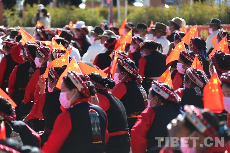 上午10時30分,伴隨著歌舞《歌頌幸福》,慶祝西藏百萬農(nóng)奴解放63周年專場文藝演出拉開帷幕?!睹飨扇藖怼贰豆湫鲁恰贰斗磙r(nóng)奴把歌唱》《新舊對比》等節(jié)目在現(xiàn)場掀起一個又一個高潮。舞臺下,滿是身著盛裝的各族群眾,不斷揮舞著手中的五星紅旗,臉上綻放著感動和幸福的笑容。