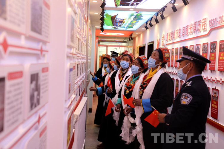 圖為邊民群眾與民警參觀九號(hào)執(zhí)勤點(diǎn)黨建活動(dòng)室 攝影:格熱