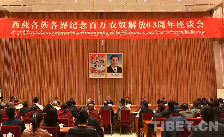 圖為西藏各族各界紀念百萬農(nóng)奴解放63周年座談會現(xiàn)場 攝影:王媛媛