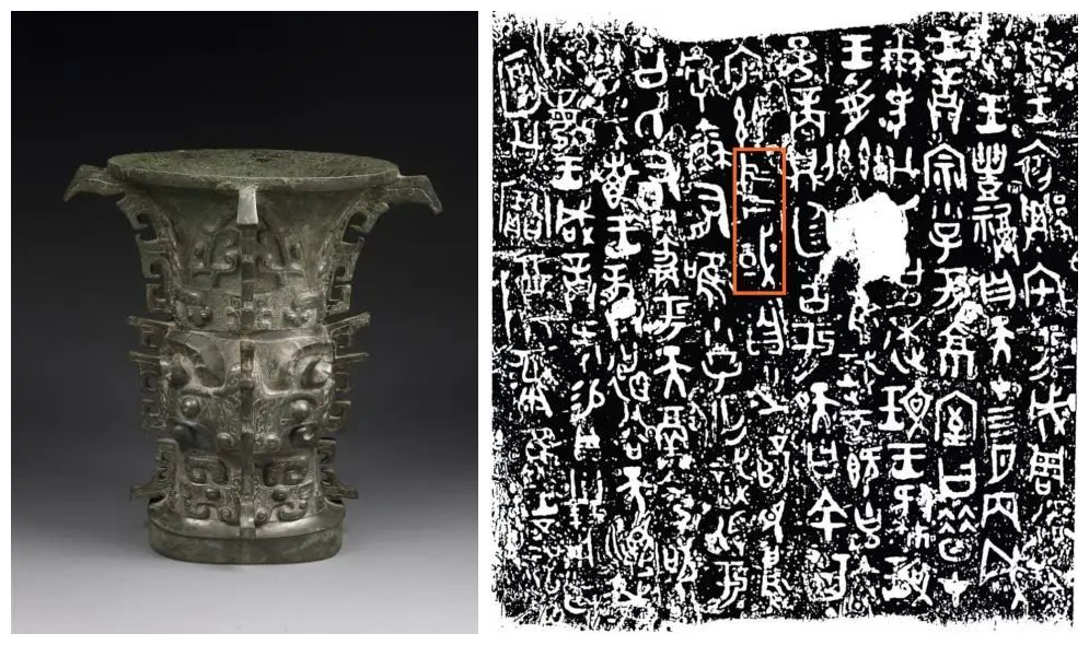 圖左為出土于陜西寶雞的西周早期青銅器、中國(guó)首批禁止出國(guó)(境)展覽文物、國(guó)家一級(jí)文物——何尊;圖右為何尊內(nèi)底鑄銘文“中國(guó)”一詞。這是“中國(guó)”一詞最早的出土見證。 圖片來(lái)源:寶雞青銅器博物院