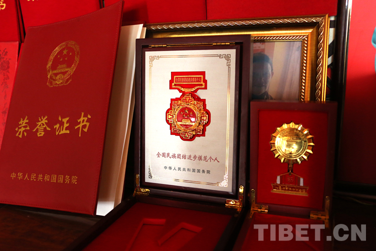 圖為楊桂房家中擺放的全國(guó)民族團(tuán)結(jié)進(jìn)步模范個(gè)人榮譽(yù)證書和獎(jiǎng)?wù)?攝影:王佳豪