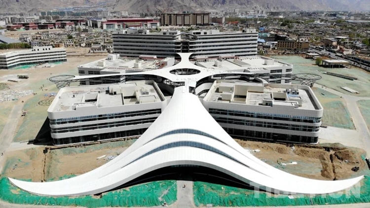 中國(guó)西藏網(wǎng)訊 挖掘機(jī)的轟鳴聲、鋼管的碰撞聲,走進(jìn)西藏自治區(qū)醫(yī)院項(xiàng)目施工現(xiàn)場(chǎng),一派忙碌的景象。從空中俯瞰,建設(shè)中的西藏自治區(qū)醫(yī)院外形宛如一朵格?;ǎ壳罢M(jìn)行室內(nèi)裝修和機(jī)電安裝。