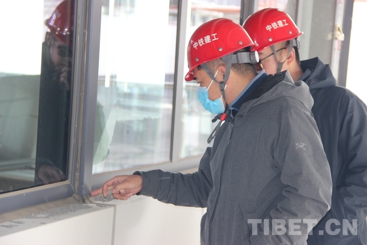圖為張磊(左)和同事對(duì)西藏自治區(qū)醫(yī)院項(xiàng)目施工開(kāi)展現(xiàn)場(chǎng)檢查