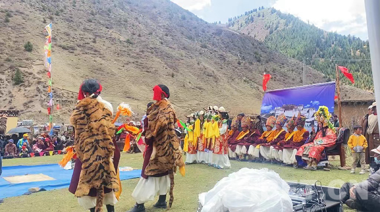 此次《諾桑王子》的表演劇本,由演員們自發(fā)組織創(chuàng)作,保留了古老的唱腔藝術(shù)和服飾藝術(shù),在原創(chuàng)基礎(chǔ)上,添加了折嘎、昌都鍋莊、康巴特色體育競(jìng)技等內(nèi)容。在保護(hù)與創(chuàng)新中傳承,造就了這座村落獨(dú)特的藏戲文化。
