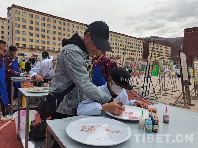 圖為烹飪專業(yè)教師李建國(guó)指導(dǎo)來(lái)自丁青縣的洛松德青制作果醬畫(huà)