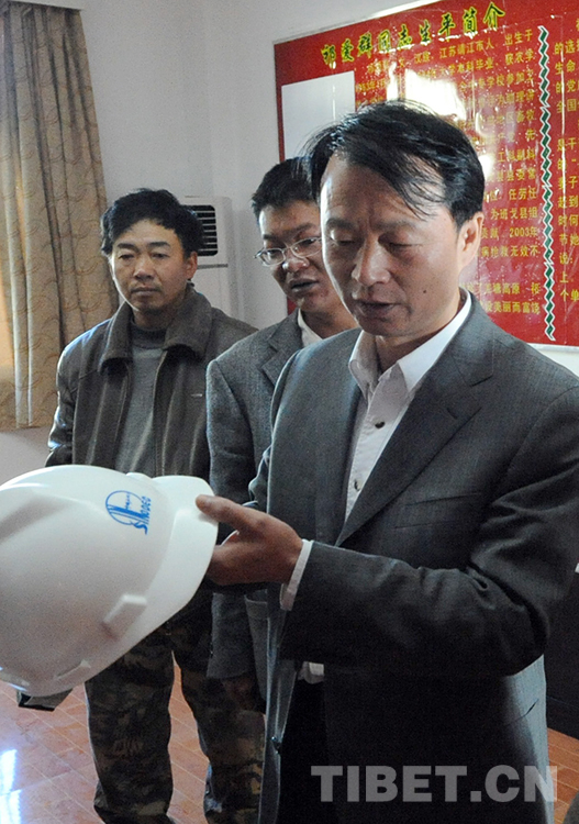 這是中國石化首批援藏干部李一超,在回憶他向祁愛群贈(zèng)送這頂?shù)V工帽的經(jīng)過(唐召明2009年8月12日攝)