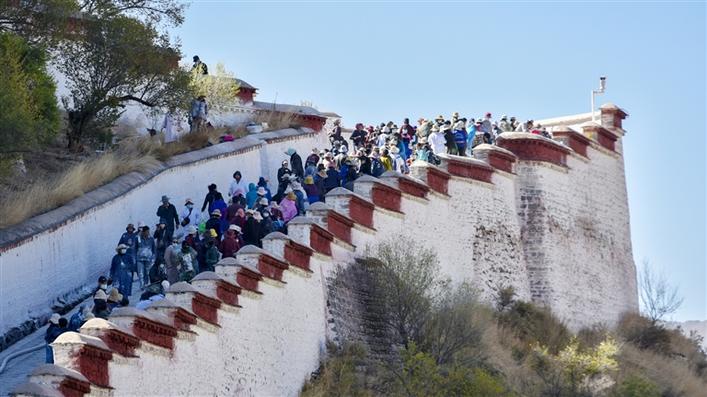 圖為布達(dá)拉宮一年一度的粉刷“美顏”時刻 圖片來源:西藏日報