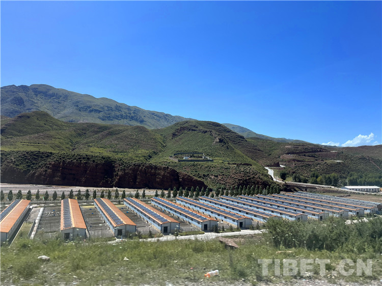 中國西藏網(wǎng)訊 汽車在山路上轉(zhuǎn)過一個彎,遠(yuǎn)遠(yuǎn)看到一排排整齊的房子,房頂?shù)奶柲馨宸瓷渲柟?,格外耀眼。原來這就是西藏自治區(qū)昌都市貢覺縣藏東生物科技開發(fā)有限公司的阿旺綿羊羊舍。