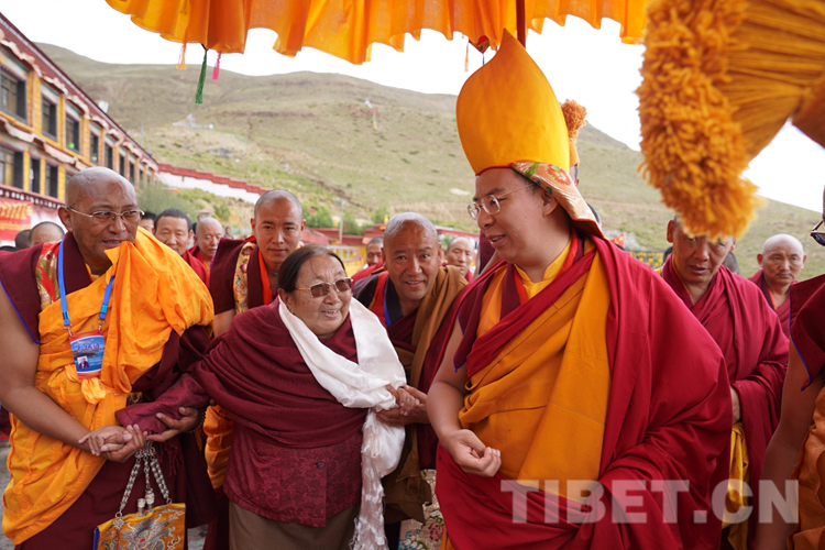 “多吉帕姆仁波切,您慢點!”桑頂?多吉帕姆德慶曲珍因年事已高,走路顯得有些吃力,班禪見狀細(xì)心叮囑道。