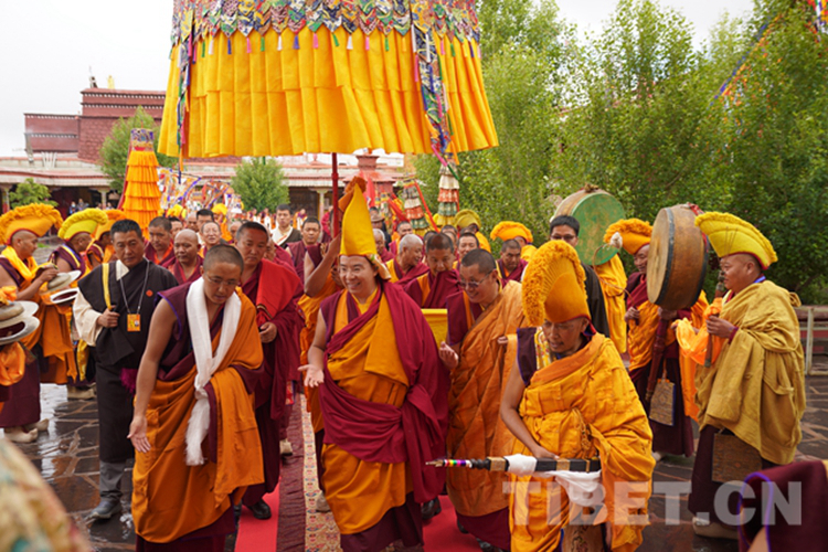圖為班禪在桑頂寺僧人和儀仗隊引領(lǐng)下緩緩入寺 攝影:王淑