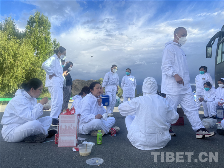 旦增群培,瓊結縣加麻鄉(xiāng)衛(wèi)生院院長兼瓊結鎮(zhèn)衛(wèi)生院負責人,他說:“沒什么可說的,就是聽從組織安排,哪里需要哪里上。隊員們?yōu)榱斯?jié)約物資,減少傳播概率,一直保持著早上工作開始后中間不休息,堅持到下午才吃飯的工作模式。經(jīng)過大家的團結一致,出色地完成了本次任務。”