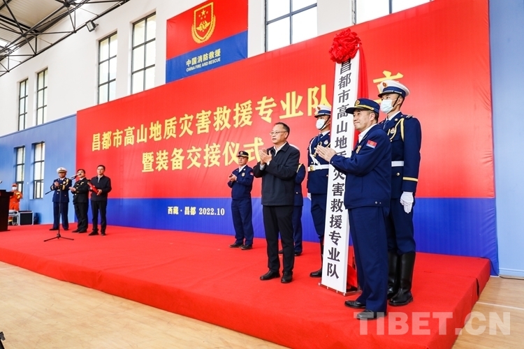 中國(guó)西藏網(wǎng)訊 10月6日,西藏自治區(qū)昌都市高山地質(zhì)災(zāi)害救援專(zhuān)業(yè)隊(duì)成立暨裝備交接儀式舉行,這是西藏首支高山地質(zhì)災(zāi)害救援專(zhuān)業(yè)隊(duì)。