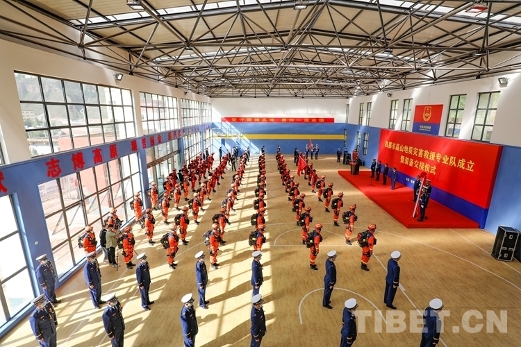 圖為昌都市高山地質(zhì)災(zāi)害救援專(zhuān)業(yè)隊(duì)成立暨裝備交接儀式現(xiàn)場(chǎng)
