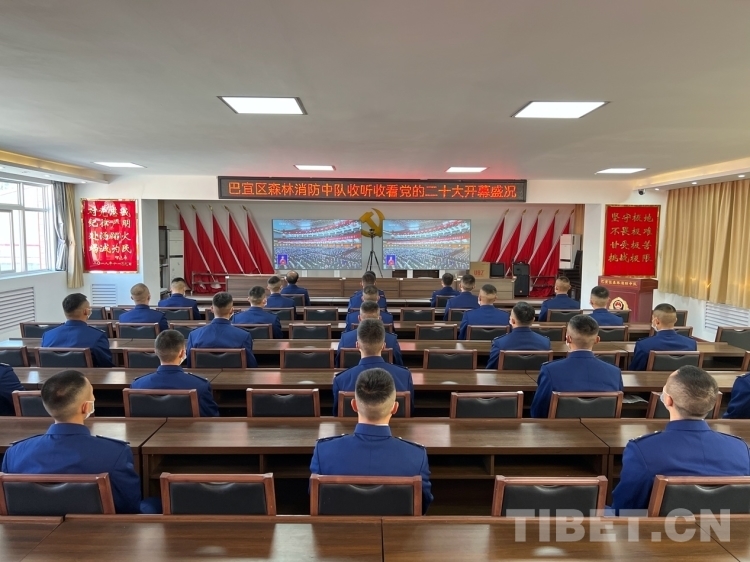 圖為林芝市森林消防支隊組織收聽收看黨的二十大開幕會 圖片由林芝市委宣傳部提供