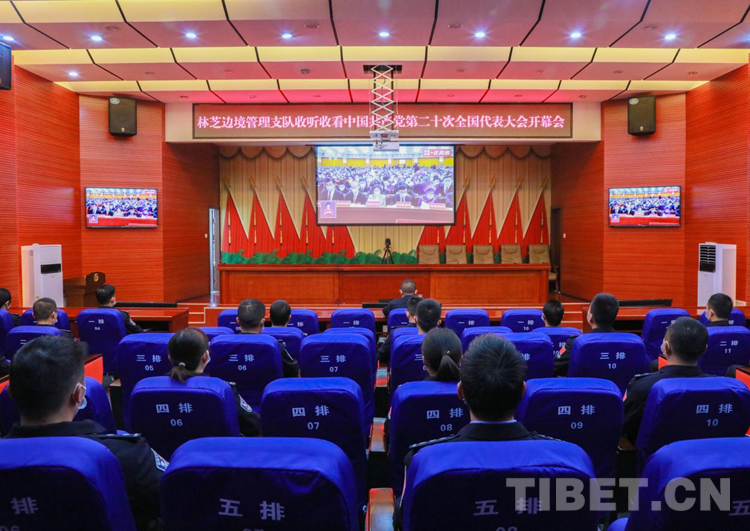 中國西藏網(wǎng)訊 10月16日上午10點,伴隨著莊嚴的國歌,舉世矚目的中國共產(chǎn)黨第二十次全國代表大會在北京人民大會堂開幕。西藏自治區(qū)林芝邊境管理支隊各級民警通過電視、電腦、手機等方式在單位內(nèi)、執(zhí)勤點上、轄區(qū)里與群眾共同收看了黨的二十大開幕會直播。