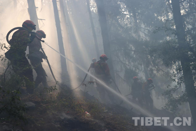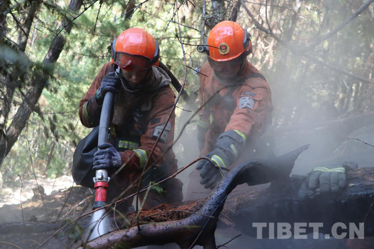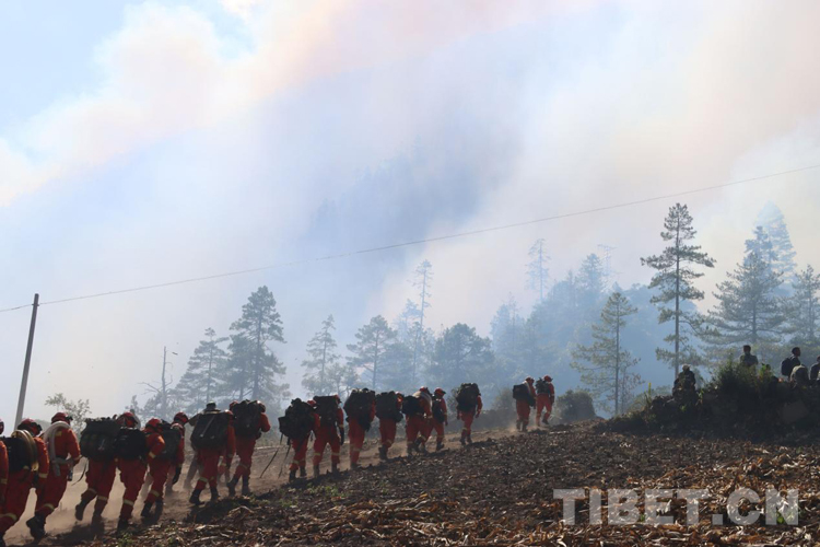火場(chǎng)上,不說(shuō)有感天動(dòng)地的故事,但是那種“無(wú)畏火魔、不怕?tīng)奚⑸嵛移湔l(shuí)、團(tuán)結(jié)協(xié)作”的故事卻到處可見(jiàn)。那天,我們?cè)诮泳?,第一時(shí)間趕赴現(xiàn)場(chǎng),當(dāng)看到一條長(zhǎng)長(zhǎng)的火線猶如一條蜿蜒的巨龍盤(pán)旋在空檔村山腰,火舌在大風(fēng)助威下翻滾著向南側(cè)撲去時(shí),飛哥和我各帶領(lǐng)10名黨員骨干以南北兩翼夾擊的陣勢(shì)迎戰(zhàn)火魔。在高達(dá)2800米的原始林區(qū),夜里溫度接近-5℃,槍頭手高琪已全身上下濕透并伴隨冰片的出現(xiàn),隱約透著讓人冷顫的寒光,顫抖的身體讓槍頭不斷左搖右擺,但他毅然肩扛槍頭,勇斗火魔。撲救完畢后,剛要準(zhǔn)備休整,中隊(duì)接到殲滅山頂火點(diǎn)的任務(wù),火情就是命令,指戰(zhàn)員背著沉重的裝備在近70-80度的亂石陡坡上,抓著樹(shù)枝一步步向上攀爬,16年兵齡的王建紅在爬山過(guò)程中使勁喘息,即使空氣中彌漫著飛舞的灰,也為吸取更多的氧氣保持體力;接近山頂時(shí),一顆直徑約80cm的滾石從山頂滾落,體型弱小的二級(jí)消防士曹橋在緊促的避險(xiǎn)哨音中采取緊急避險(xiǎn)措施成功躲避,滾石與他擦肩而過(guò),但危險(xiǎn)的環(huán)境未能抑制他戰(zhàn)斗的決心。中隊(duì)指戰(zhàn)員暢談此次滅火作戰(zhàn)感受時(shí),都紛紛笑言:“我們從海拔2300米打到了3700米,相當(dāng)于從察隅到了拉薩。”31日,中隊(duì)轉(zhuǎn)戰(zhàn)火場(chǎng)西南線,此時(shí)經(jīng)過(guò)5天的連續(xù)奮戰(zhàn),指戰(zhàn)員的思考能力和興奮的感覺(jué)消失殆盡,只剩下機(jī)械式行走的軀體,膝蓋有舊傷的戰(zhàn)斗班班長(zhǎng)王明因?yàn)槌?fù)荷運(yùn)動(dòng)已疼痛難忍,但他在咬牙堅(jiān)持。班長(zhǎng)宋遠(yuǎn)金、扎西歐珠主動(dòng)擔(dān)當(dāng)不畏艱險(xiǎn),從不到2300多米的地方,背著滅火裝備和滿滿的水桶,爬到4000米的山頂排除隱患,清理煙點(diǎn)。
