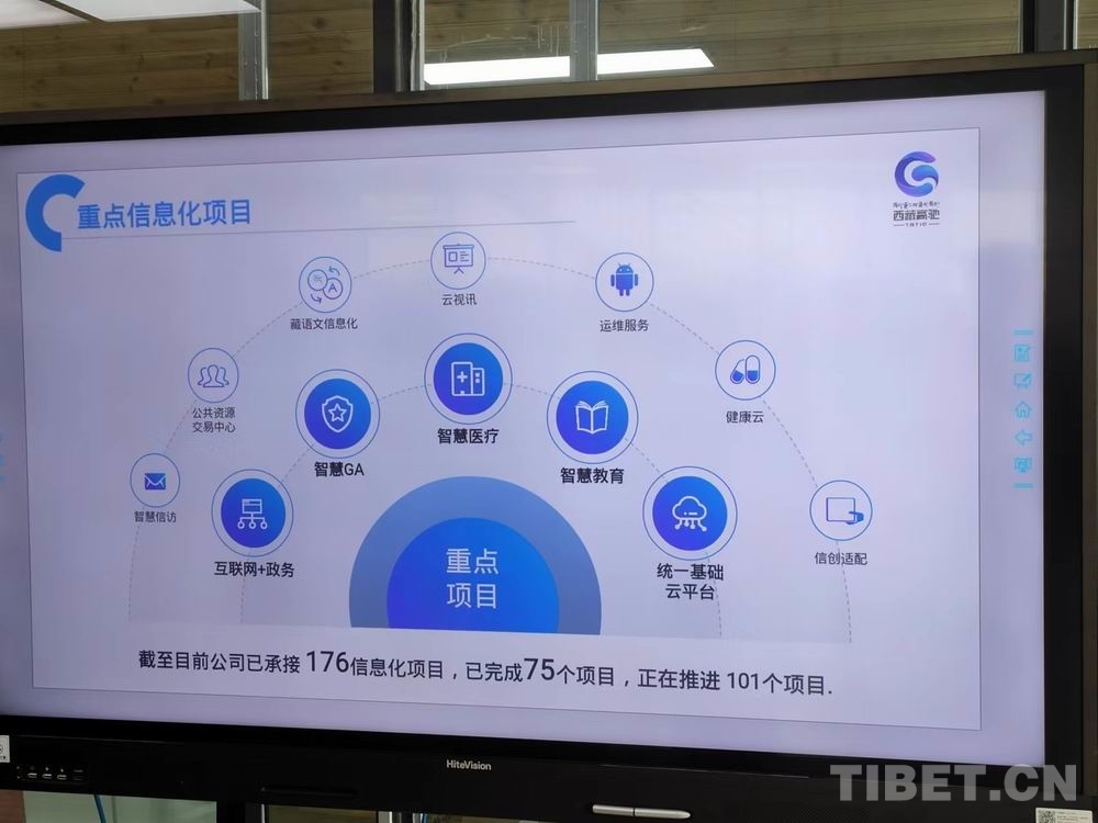 圖為由西藏自治區(qū)政府組建、旨在推動(dòng)西藏信息化建設(shè)和促進(jìn)信息產(chǎn)業(yè)發(fā)展的西藏高馳科技信息產(chǎn)業(yè)集團(tuán)有限責(zé)任公司重點(diǎn)信息化項(xiàng)目統(tǒng)計(jì) 攝影:宋爽