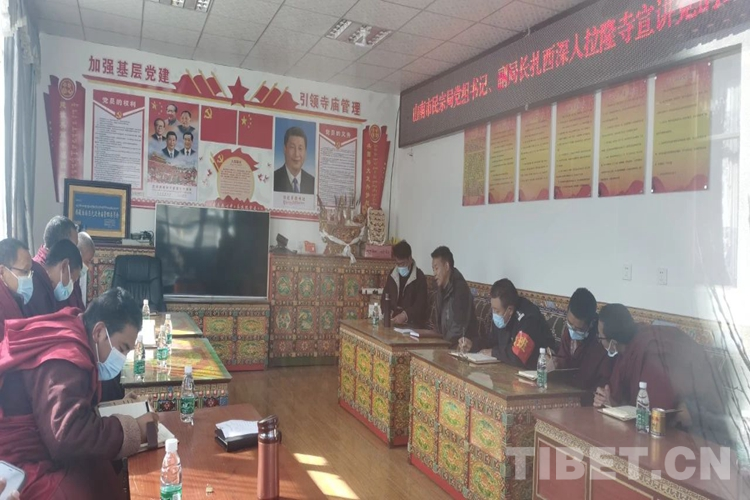 圖為洛扎縣拉隆寺僧人和駐寺干部深入學(xué)習(xí)黨的二十大精神,僧人們表示,要持續(xù)弘揚(yáng)愛(ài)國(guó)愛(ài)教優(yōu)良傳統(tǒng),自覺(jué)踐行“四條標(biāo)準(zhǔn)”,不斷增進(jìn)“五個(gè)認(rèn)同”,牢固樹(shù)立“三個(gè)意識(shí)”,堅(jiān)持藏傳佛教中國(guó)化方向,積極推動(dòng)宗教與社會(huì)主義社會(huì)相適應(yīng),堅(jiān)定不移聽(tīng)黨話(huà)、感黨恩、跟黨走。