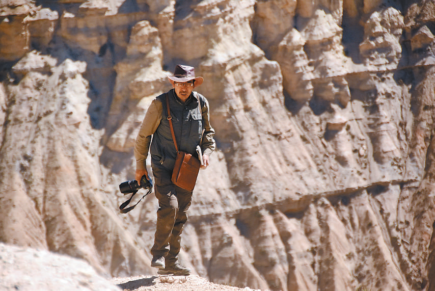圖為張建林在野外考察 攝影:王毅 圖片來源:人民日報(bào)